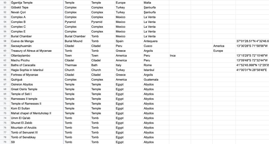 Megamex: catalog megaliths
